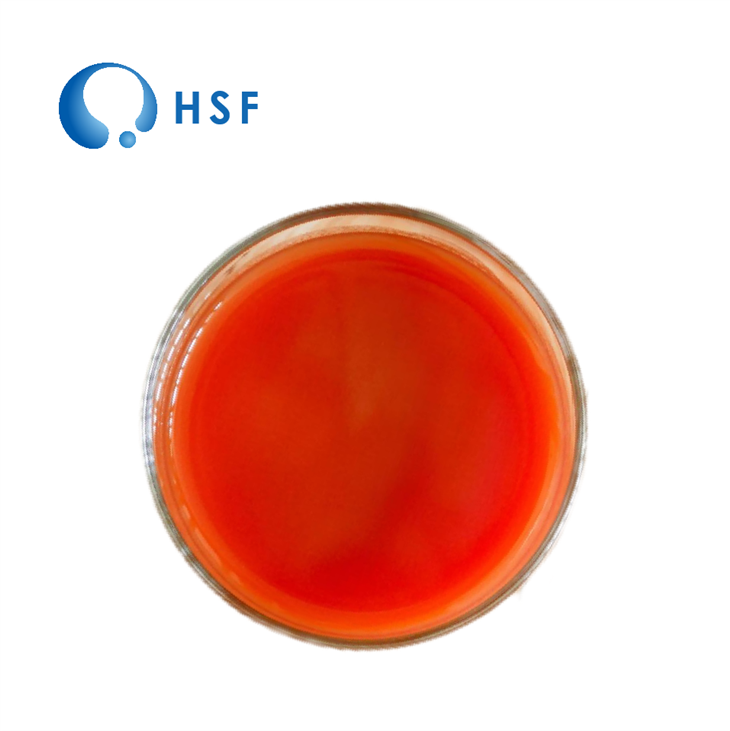 HSFSuspensión de aceite de beta carotenoes rojo oscuro a líquido aceitoso rojo marrón preparado mezclando -caroteno de Blakeslea trispora con aceite vegetal .
